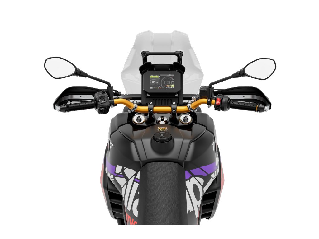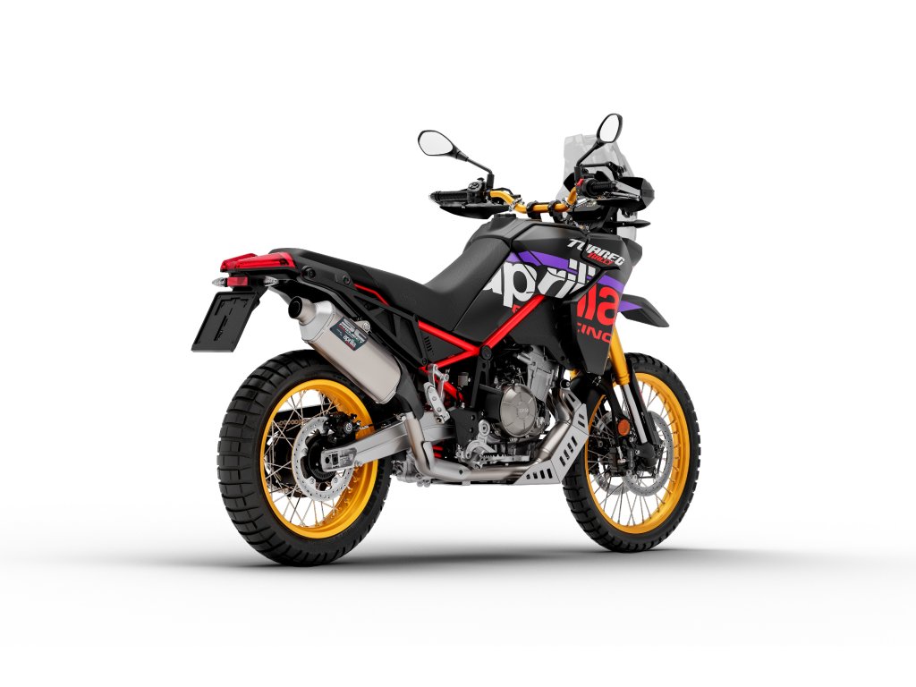 Aprilia Tuareg Rally je vyvedena v ikonickém barevném schématu rallye race replica, ve které Jacopo Cerutti projel cílem legendárního Dakaru na prvním místě. Vidlice, ráfky kol a řídítka jsou navrženy pro nejnáročnější enduro jízdu a laděny do sportovní eloxované zlaté barvy. Štíhlé linie, zesílený hliníkový kryt motoru a nový vysoký blatník ještě více zdůrazňují nekompromisní terénní charakter motocyklu. Pro lepší kontrolu při jízdě ve stoje na extrémních úsecích byly sedlo i řídítka zvýšeny, což dále zvyšuje jistotu v terénu.