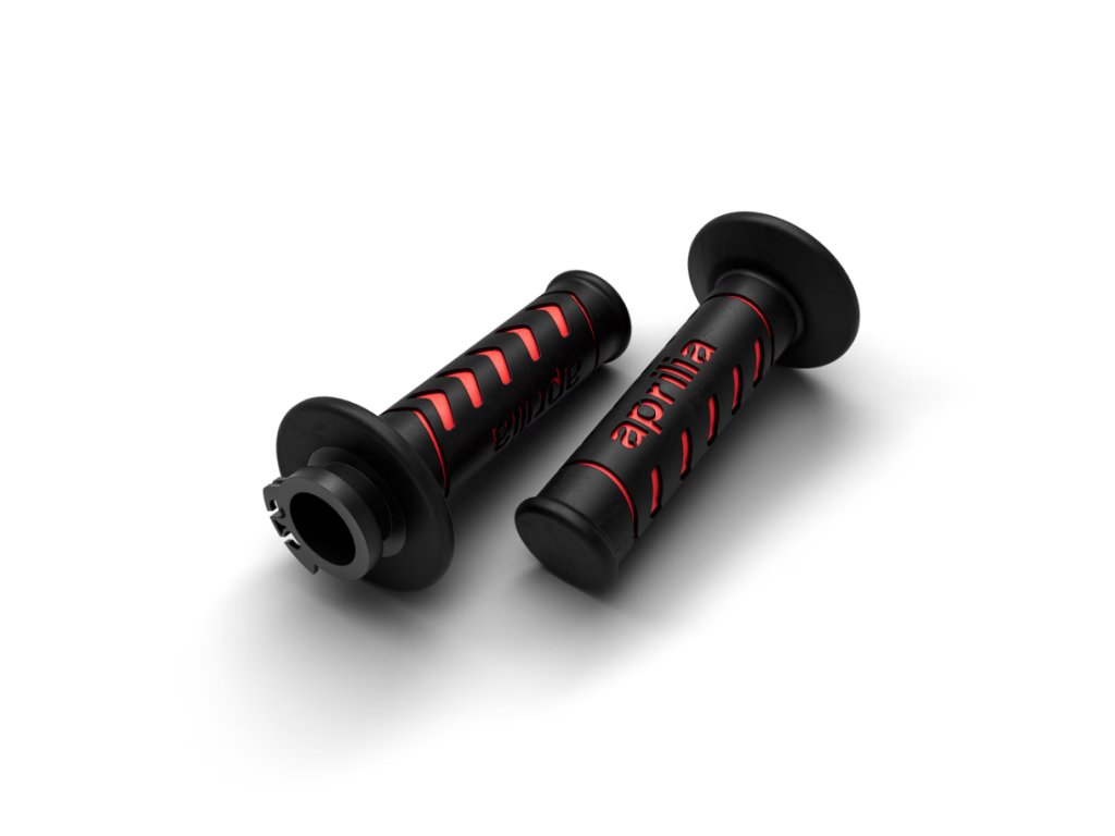 Pár rukojetí. Personalizované logem Aprilia dodávají motocyklu elegantní a sportovní vzhled. Snadno se instalují na motocykl.